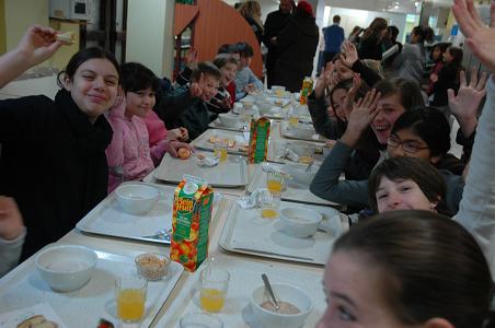 Le mardi 12 janvier, les CM2, ainsi que les 6èmes, ont pris un petit-déjeuner ensemble, pour créer un parrainage entre ces classes. A chaque table, il y avait des 6èmes et des CM2 pour que nous fassions connaissance. On nous a expliqué ce qu’il faut manger pour petit-déjeuner équilibré : des fruits ou un jus de fruit, des céréales ou du pain avec du beurre ou de la confiture, et, enfin, un produit laitier : un yaourt ou du lait (par exemple avec des céréales).