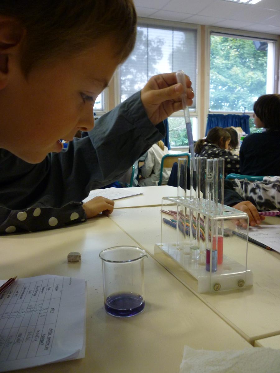 Vendredi 7 octobre, des étudiantes de l’IUT sont venues dans la classe pour le projet « chimie ». Elles sont venues trois fois jusqu’aux vacances de la Toussaint. Nous avons fait des expériences.