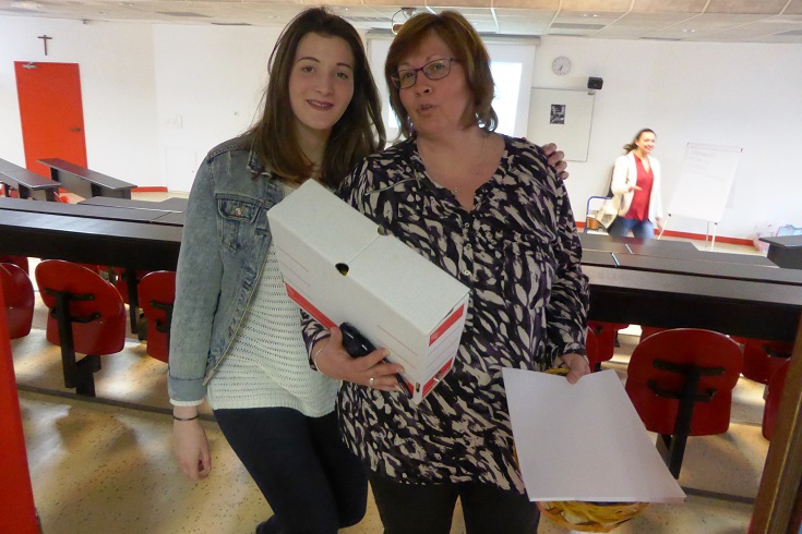 Après un discours d’introduction de M. Eude, Directeur de l’Institution et de Mme Perret, Directrice adjointe, les étudiants de BTS première année, « coachés » par M. Lanoë, leur Professeur de communication, ont proposé aux lauréats la kermesse de l’immobilier : quizimmo, mimmo, jeu des 7 erreurs, … se sont succédé dans une ambiance très bon enfant ! … il leur a même été demandé de réaliser une construction en matériaux recyclés ! Le tout couronné par une interprétation brillante de Reckoning Song par Mathilde, au chant et à la guitare, accompagnée au djembé par M. Lanoë !