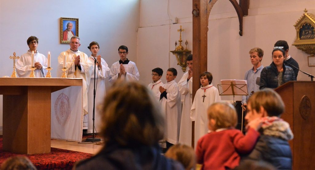 Jeudi 19 octobre dernier, le Père Geoffroy de La Tousche est venu célébrer la Messe en fêtant, de manière anticipée, cette Fête de Saint Jean-Paul II. Dans une homélie énergique et stimulante, il a commenté le fameux dialogue de Jésus avec Pierre : « M’aimes-tu ? ». Un grand merci à lui pour cette méditation, dont personne ne doute qu’elle portera beaucoup de fruits.