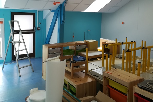 La classe de maternelle des moyenne et grande sections a subi elle aussi une rénovation complète, tout comme la salle de conférence.