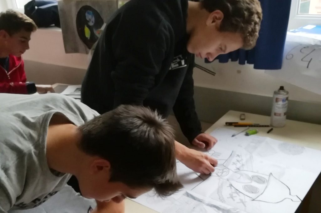 Après avoir étudié en Histoire et, au préalable, avoir produit des textes, fait des recherches documentaires et étudié la stèle en mémoire des anciens élèves de l’Institution Join-Lambert, morts au combat lors de la Première Guerre mondiale, les élèves ont eu à produire une réalisation plastiques et esthétique.