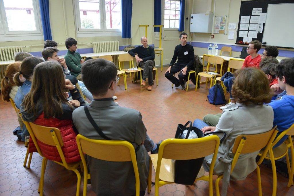 Pendant que Mgr Lebrun rencontrait la moitié des jeunes, les autres recevaient, en petits groupes, des témoignages de prêtres ou de laïcs.