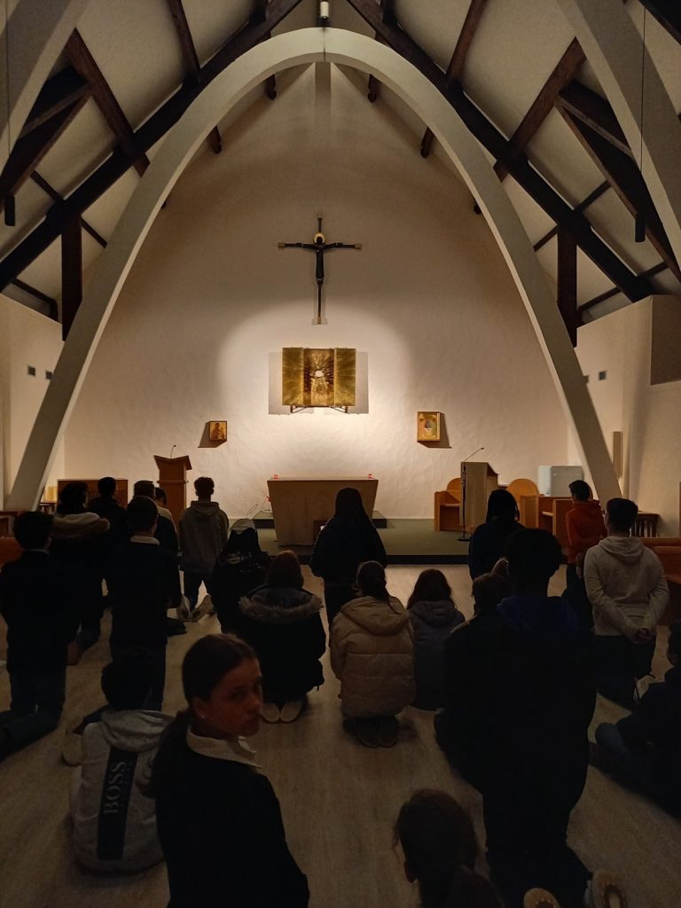 Jeudi soir, après avoir eu une explication sur l’Adoration, les confirmands ont pu vivre ce cœur à cœur avec le Seigneur devant le Saint Sacrement.