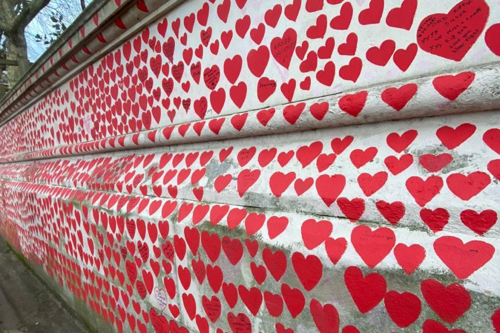 Après cela, nous nous sommes dirigés à pied vers le centre de Londres. Nous avons longé la Tamise, jusqu’au Westminster Bridge. Sur le chemin, nous avons vu un immense mur recouvert de cœurs rouges. Il s’agit d’un mur mémorial pour le COVID. Il fait plus de 500 mètres et est recouvert de milliers de cœurs.