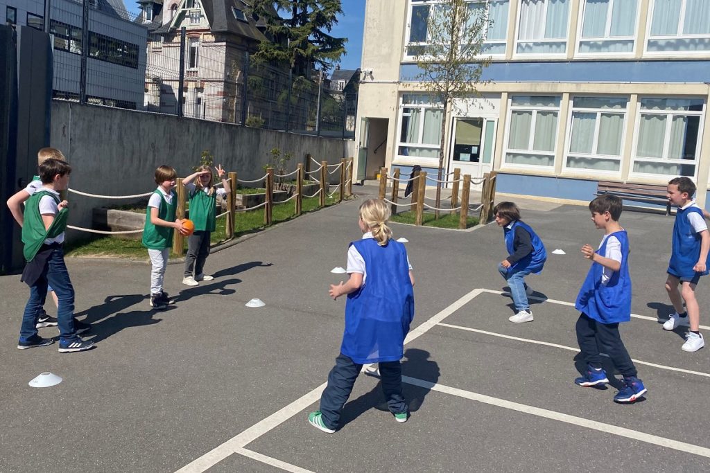 Du jeudi 27 février au jeudi 3 avril, les CE2 ont suivi des séances de handball avec Julien, intervenant sportif, et toujours avec un temps plus ou moins ensoleillé. Durant l’échauffement ils révisaient le lancer à bras cassé. Durant les séances, les enfants tournaient sur 3 ateliers : un circuit de lancer-poursuite pour apprendre à manipuler le ballon et dribler ; un jeu collectif pour apprendre à se déplacer, marquer et se démarquer sur un terrain ; un match pour mettre en œuvre les acquisitions.