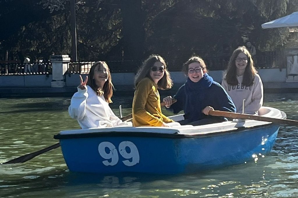 Au « parque del buen Retiro ». À midi, nos professeurs nous ont dit qu’elles allaient faire un tour de barque sans nous. Mais ce n’était pas vrai ! Nous avons fait de la barque par groupe de quatre pendant quarante-cinq minutes. C’était génial : il faisait grand soleil. Après cette promenade, nous avons eu une interro sur les tableaux du musée du Prado car nous n’avions pas été exemplaires. C’était assez simple et les premiers avaient des grandes barres chocolatées et les autres des petites.