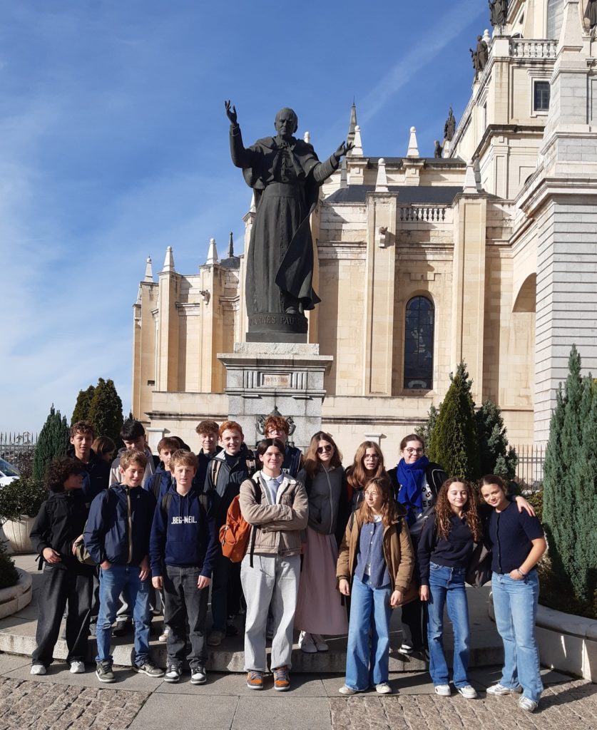 Nous sommes partis de Rouen en car, à 7h, en direction de Paris-Orly. À 10h½, nous étions dans l’aéroport pour enregistrer nos bagages. Après avoir passé la douane nous sommes montés dans l’avion et nous nous sommes installés respectivement à nos places éparpillées un peu partout dans l’engin. Après 2 heures de vol – et quelques turbulences… – nous avons atterri à l’aéroport de Madrid. Nous y avons trouvé notre super car à double étage qui nous a accompagnés jusque dans le centre de Madrid où nous avons revu nos correspondants et rencontré leurs parents. Nous nous sommes alors dit au revoir et nous sommes partis chez nos familles d’accueil. Gustave Silvestre, élève de Troisième 4.