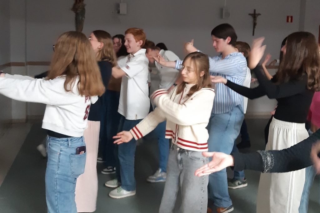 La soirée a débuté autour d’un repas sur une grande table, partagé avec nos amis espagnols, où les rires se mêlaient aux conversations. Les discussions passaient naturellement d’une langue à l’autre, ce qui crée une ambiance chaleureuse. Après le dîner, la musique est devenue plus forte et tout le monde s’est levé pour danser. Malgré le fait que nous ne connaissions pas les musiques espagnoles, nous avons bien profité. Tout le monde dansait et l’atmosphère était très chouette. C’était une soirée simple mais inoubliable, pleine de joie et d’énergie.