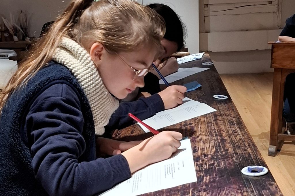 Pendant ce temps, les élèves de l’autre groupe ont vécu l’expérience immersive du passage du certificat d’études, comme à l’époque ! Munis de porte-plume, d’un encrier et de buvards chacun, ils ont participé à cette épreuve… courageusement !