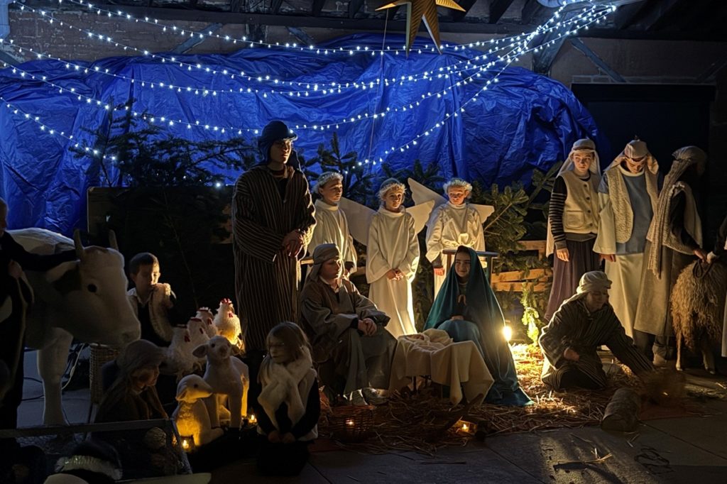 Pour les chrétiens, la fête de Noël (du latin natalis, « naissance », « nativité ») célèbre la naissance de Jésus, Fils de Dieu, le Sauveur attendu, annoncé par les prophètes. Comme le racontent les évangélistes Luc et Mathieu, Marie « mit au monde son fils premier-né ; elle l’emmaillota et le coucha dans une mangeoire ». Dans les environs, se trouvaient des bergers. L’Ange du Seigneur s’approcha et leur dit : « Aujourd’hui vous est né un Sauveur dans la ville de David. Il est le Messie, le Seigneur. Et voilà le signe qui vous est donné : vous trouverez un nouveau-né emmailloté et couché dans une mangeoire ». Ci-dessus, une photo de notre crèche vivante 2025…