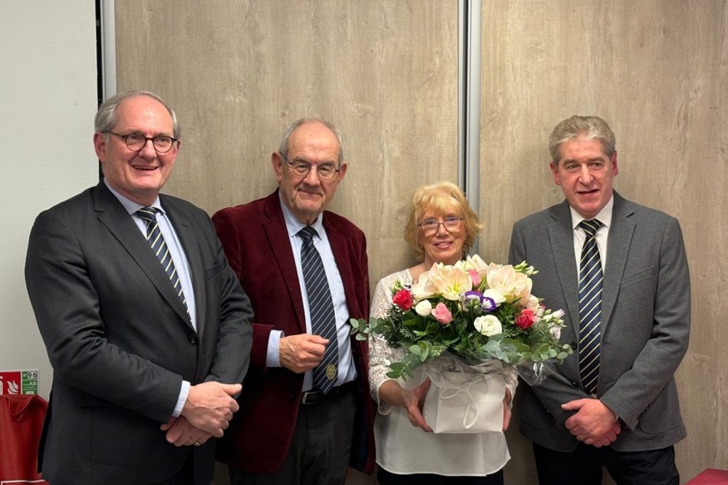 A l’issue de la réunion du Conseil d’administration de l’OGEC du 10 décembre dernier, au cours de laquelle ont été présentés les comptes de l’institution, les membres de ce conseil se sont réunis au self pour marquer leur reconnaissance envers Madame Brigitte DEVAUX, détachée depuis vingt-trois années à l’institution par les sociétés de restauration Isidore et Newrest.