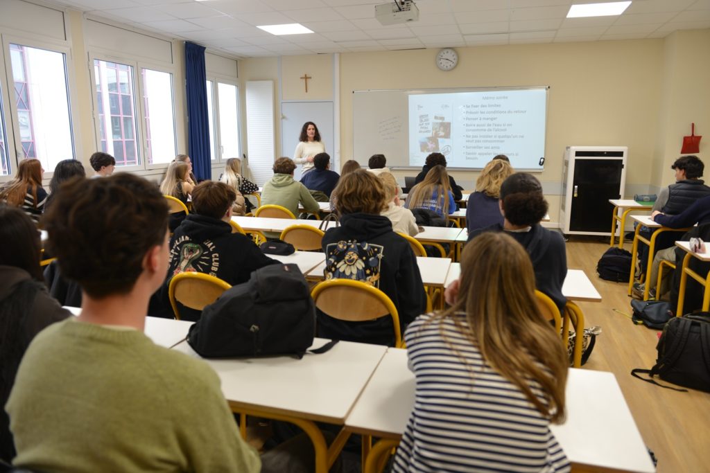 Par ces quelques mots, je veux chaleureusement remercier ici, le Dr Émilie Boisdin, mère d’élèves de l’Institution, et membre de notre Commission Santé, qui donne de son précieux temps, pour sensibiliser nos élèves de Troisième, et de Première, aux dangers liés à la consommation de l’alcool, comme du cannabis.