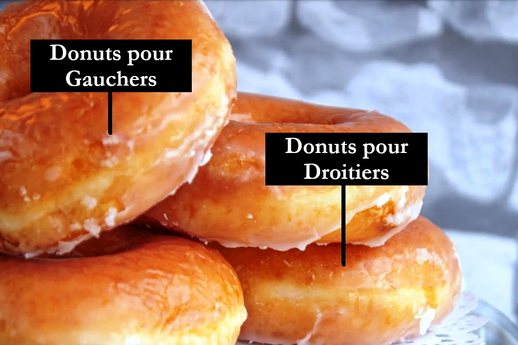 Tout d’abord, au self : notre chef vénéré va expérimenter les dunots pour gauchers. En effet, l’Institution constate que, parmi vous, nous comptons environ 15% de gauchers, soit 5 élèves par classe. « Être gaucher, c’est une galère au quotidien, parce qu’on évolue dans une école qui a été faite pour les droitiers. » nous a fougueusement déclaré un délégué lors d’un récent Conseil de Classe. Afin donc de ne pas pénaliser les gauchers, voire d’encourager cette minorité à rester fière d’elle-même, les donuts pour gauchers auront 15% de sucre en plus que les donuts pour droitiers. Nous espérons néanmoins ne pas avoir de déboires avec les diététiciens scolaires ; la direction va étudier, pendant les vacances, la parade juridique.