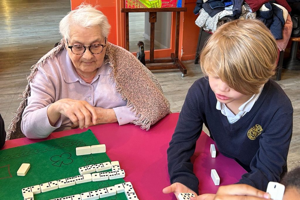 Accueillis chaleureusement par Béatrice, les enfants et les papis et mamies ont partagé des parties de dominos pleines de rires et un goûter convivial. Très vite, les barrières d’âge sont tombées et de vrais liens se sont créés.