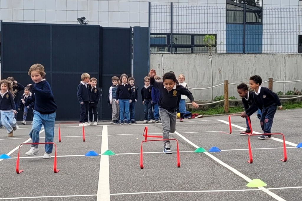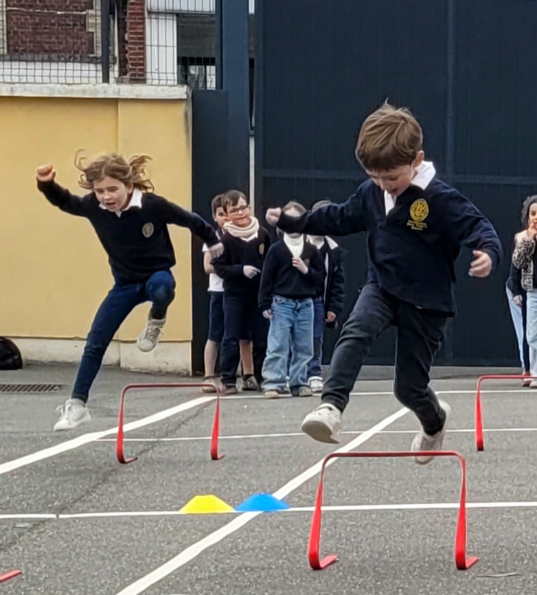 Chaque vendredi après-midi, nos élèves ont la chance de participer à des séances d’athlétisme animées par Julien, notre intervenant sportif. Après un échauffement dynamique, les enfants s’élancent sur des parcours rythmés ponctués de sauts de haies.