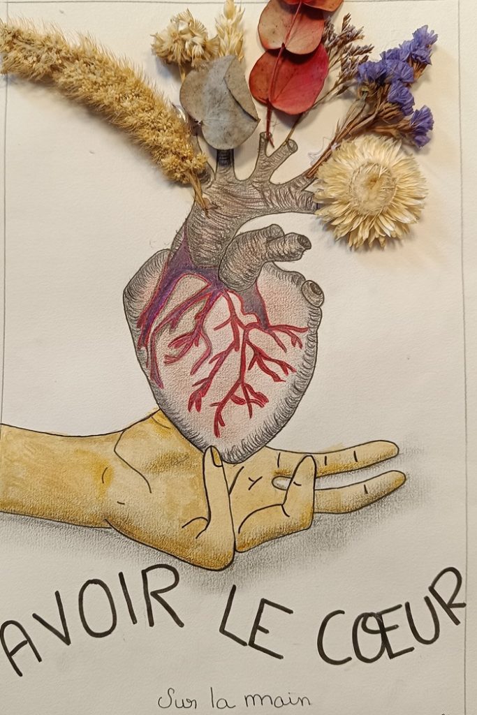 Les élèves de Troisième ont reçu un sujet libellé ainsi : « Le cœur est un organe vital associé depuis longtemps à toute une variété d’émotions. Pas étonnant qu’il se retrouve dans nombre d’expressions et de citations mémorables. Vous choisirez une expression (au choix et travaillée dans le cadre du devoir maison) afin d’en faire une illustration ».