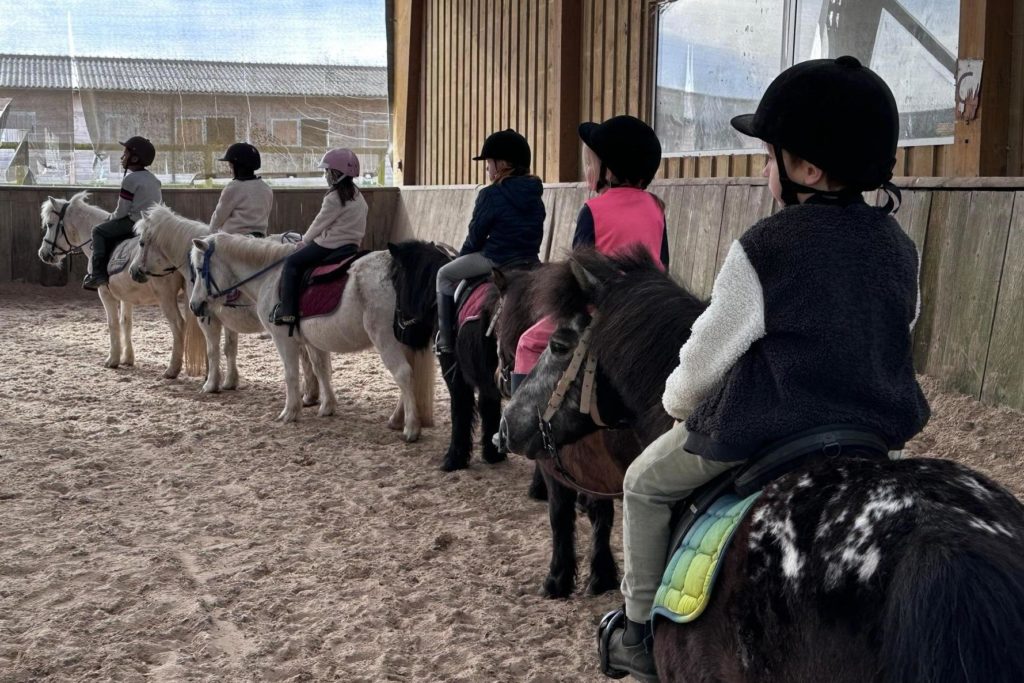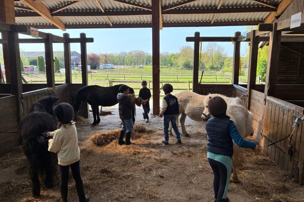 La fin de la quatrième période a été l’occasion pour les élèves de CE1 de se rendre aux Écuries Lefebvre à Quincampoix pour trois jours afin de pratiquer l’équitation en intérieur et en extérieur. En demi-groupe, les enfants ont d’abord préparé leur monture. A la suite de cela, de nombreux jeux et activités ont été proposés par la monitrice. Les enfants ont ainsi appris à vaincre leurs craintes (peur de l’animal, déséquilibre, instabilité, chute…) et surmonter leur émotivité, maîtriser l’allure, la vitesse et le sens de déplacement des poneys et enchaîner des actions. Pendant ce temps, l’autre demi-groupe menait d’autres activités : visite de l’immense centre équestre, enrichissement du vocabulaire au travers du lexique spécifique, travail d’art plastique. Merci encore aux parents de nous avoir accompagnés.